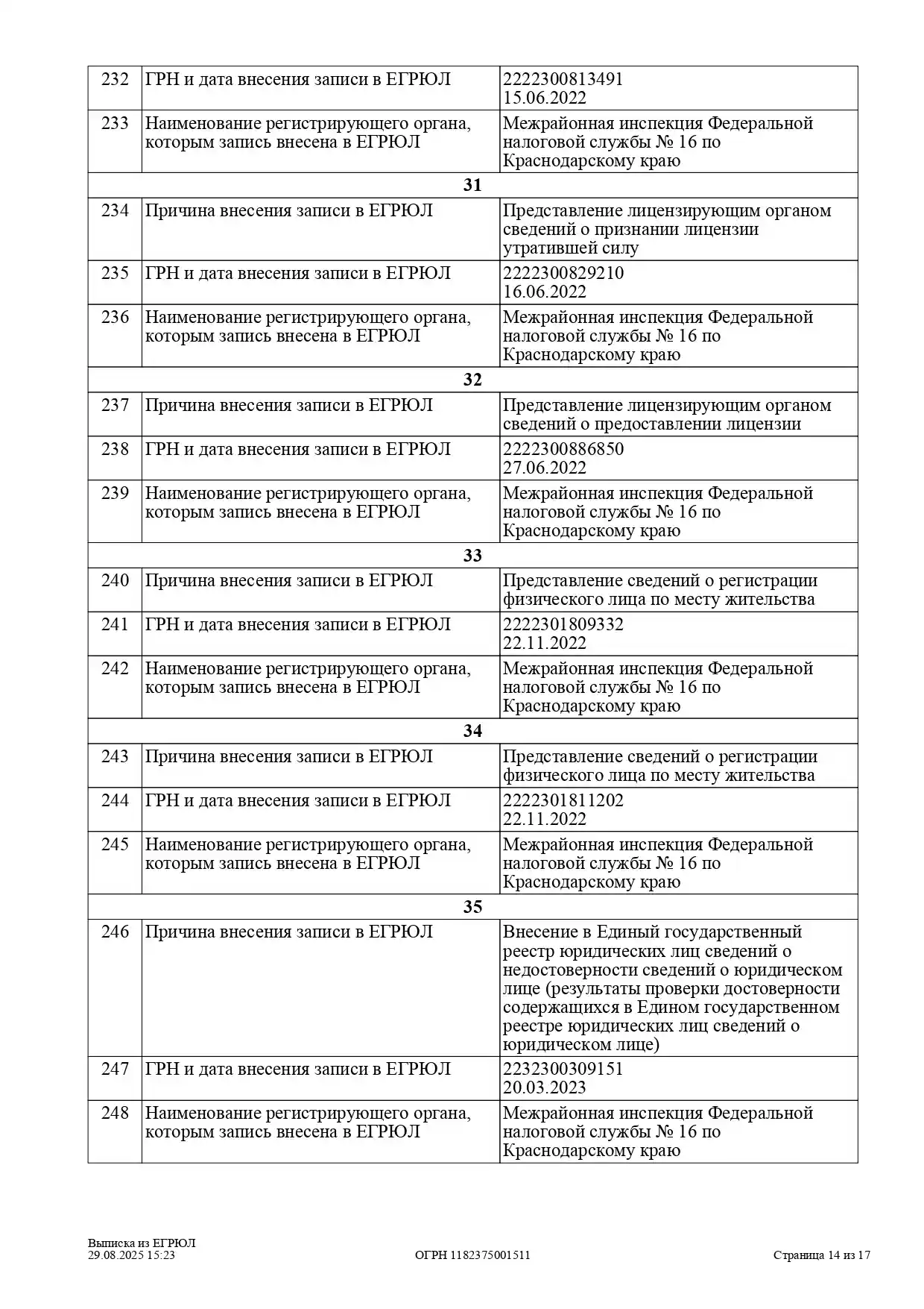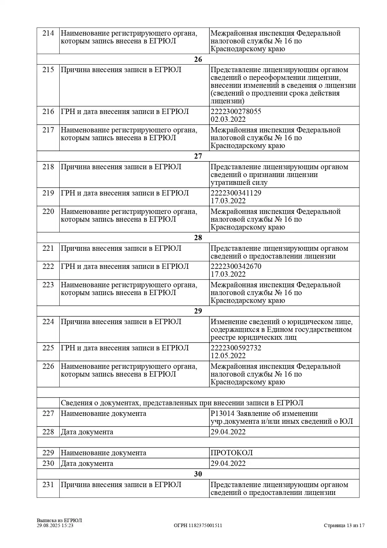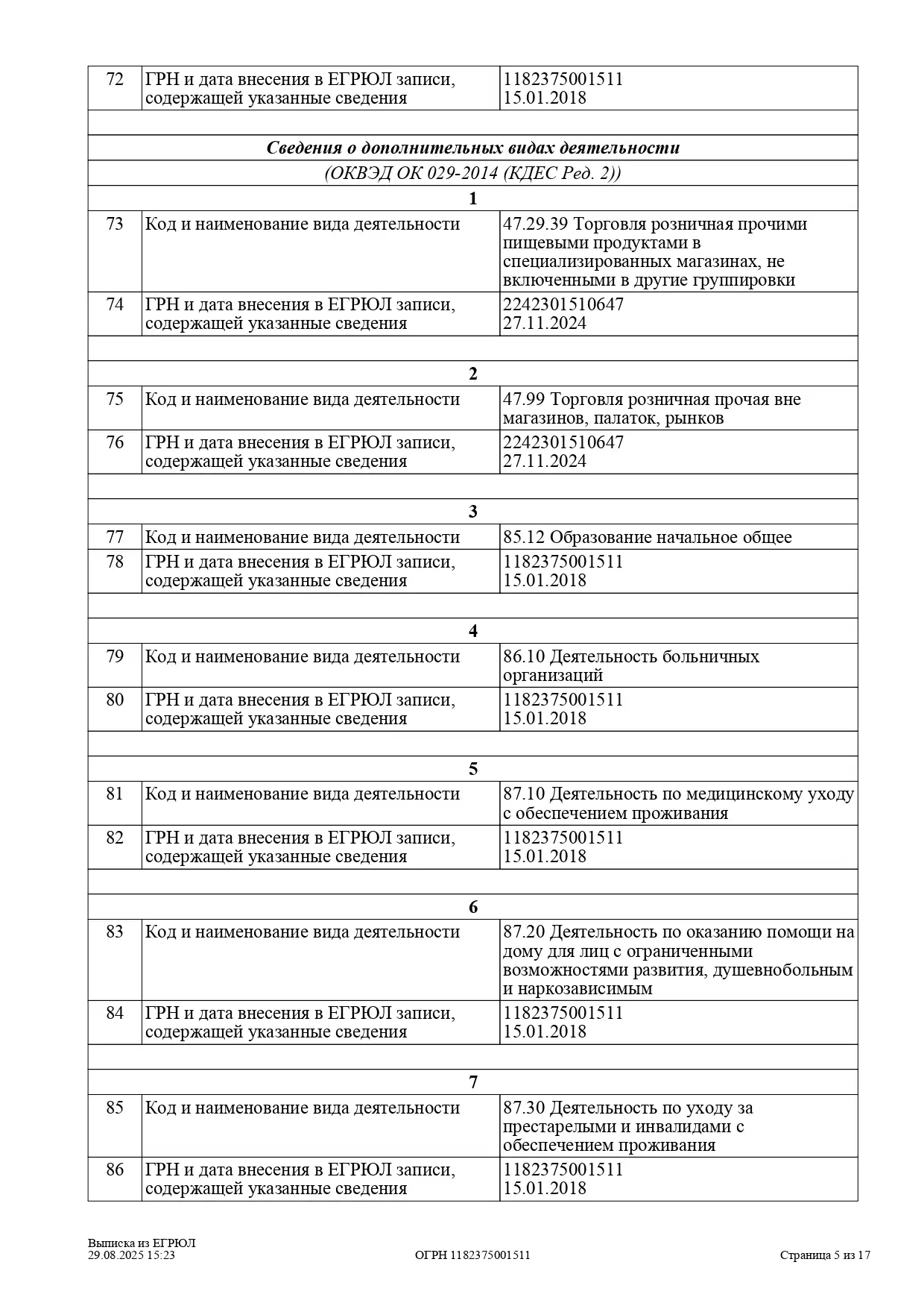 Выписка из ЕГРЮЛ ООО «Детокс»
